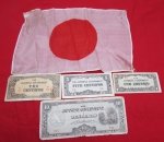 Japanese WWII Silk Flag and Currency Lot