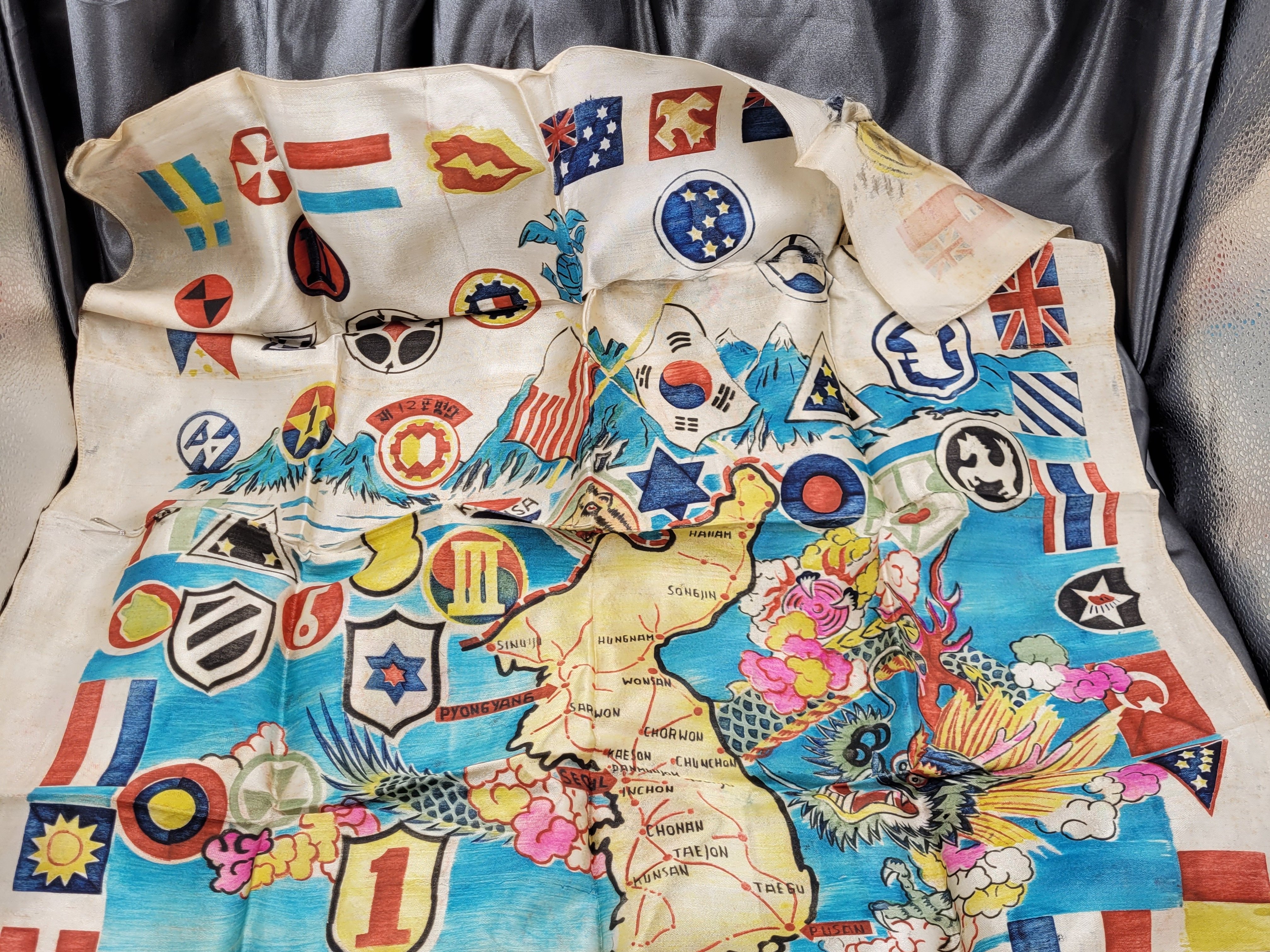 KOREAN WAR PAINTED SILK SCARF
