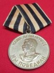 Original era manufacture. Soviet WWII medal for Victory Over Germany, original ribbon, aluminum backing plate. Very clean, normal wear and use as shown.