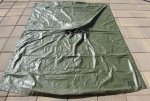 Original era manufacture. Very pliable rubberized fabric poncho with hood in a dark OD color, clear markings. No tears or holes, all snaps are present.