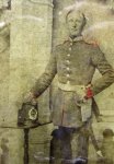 Original era photography. Scarce image of a Hanoverian soldier shown with his shako on a photographers table, and wearing briquette style short sword. Photographers tinting to the cuffs, collar and shoulder straps. The corners have been rounded to ease the mounting of he CDV in an album.