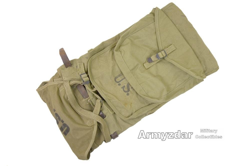 This is a lightly used original WW2 US haversack in a very good condition. It is complete set with tail and mess kit pouch. Just on the back are staing from long time storage.