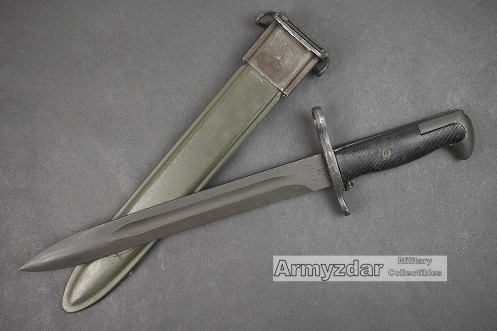 The bayonet is in a very good condition with its original scabbard. Od the blade is marked A.F.H. and US, on the scabbard U.S. and grenade.
