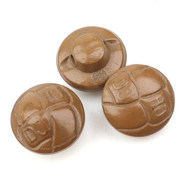 Set of 3 'H.J.' & 'D.J.' marked tunic buttons as used on Hitler-Jugend and/or Deutsche-Jugend Brown Shirts. The buttons are nicely RZM marked on the back. Hard to find replacement items when needed!