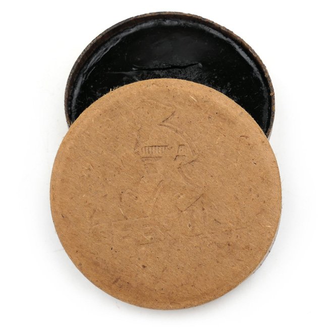 Unissued package of German 'Seehund Lederfett' (leather grease). This leather grease was produced by the 'Sidol-Werke Siegel & Co.' from Köln (Cologne). The package is having a diameter of approximately 8,7cms and is 2,5cms high. Nice original unissued package in very good condition!