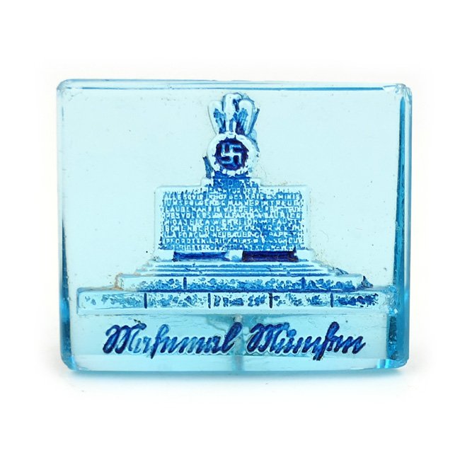 WHW (Winterhilfswerke) 'Mahnmal München' Glass Tinnie from the series 'Deutsche Baudenkmäler' (WHW Glasabzeichen). These items are from the street collection (Reichsstraßensammlung) held on 19/20 September 1942, this collection was held by the 'NSRL'. Decorative original item!