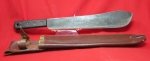 Original era manufacture. The blade measures 15 inches in length with most of the protective black paint finish removed. No corrosion issues, with a factory cutting edge. Black composition grips secured with five copper rivets. Maker marked and dated, J.J.B. 1945Molded leather scabbard body with a rawhide reinforced throat with copper rivet reinforcement. Brown leather belt loop with pommel straps, the straps are pliable and not dry, maker marked and dated McBrine 1943 .