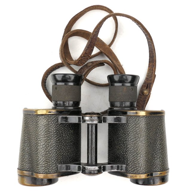 Rare original Russian 6x30 Binoculars, complete with leather carrying strap. Stamped near the left eyepiece is the hammer and sickle within a circle with a star to the top. They are dated '1941r' with a serial number. The binoculars are showing normal traces of usage and some small damages. Nice original example in good used condition, a nice and honest piece of equipment!