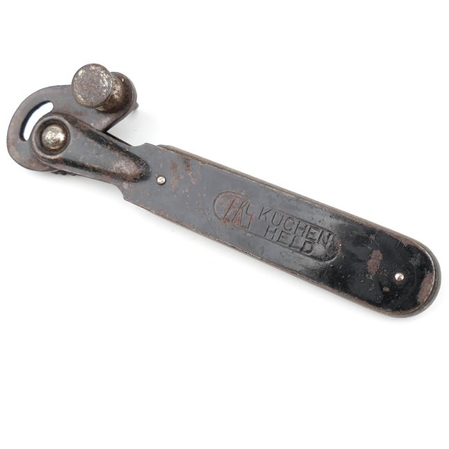 World War 2 German Can Opener (Dosenöffner). The can opener is nicely 'D.R.G.M.' (Deutches Reich Gebrauchs Muster) marked. Nice original personal kit item!