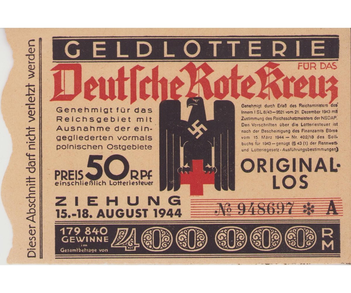 Very nice and unique DRK lottery ticket from 1944 in very good condition.