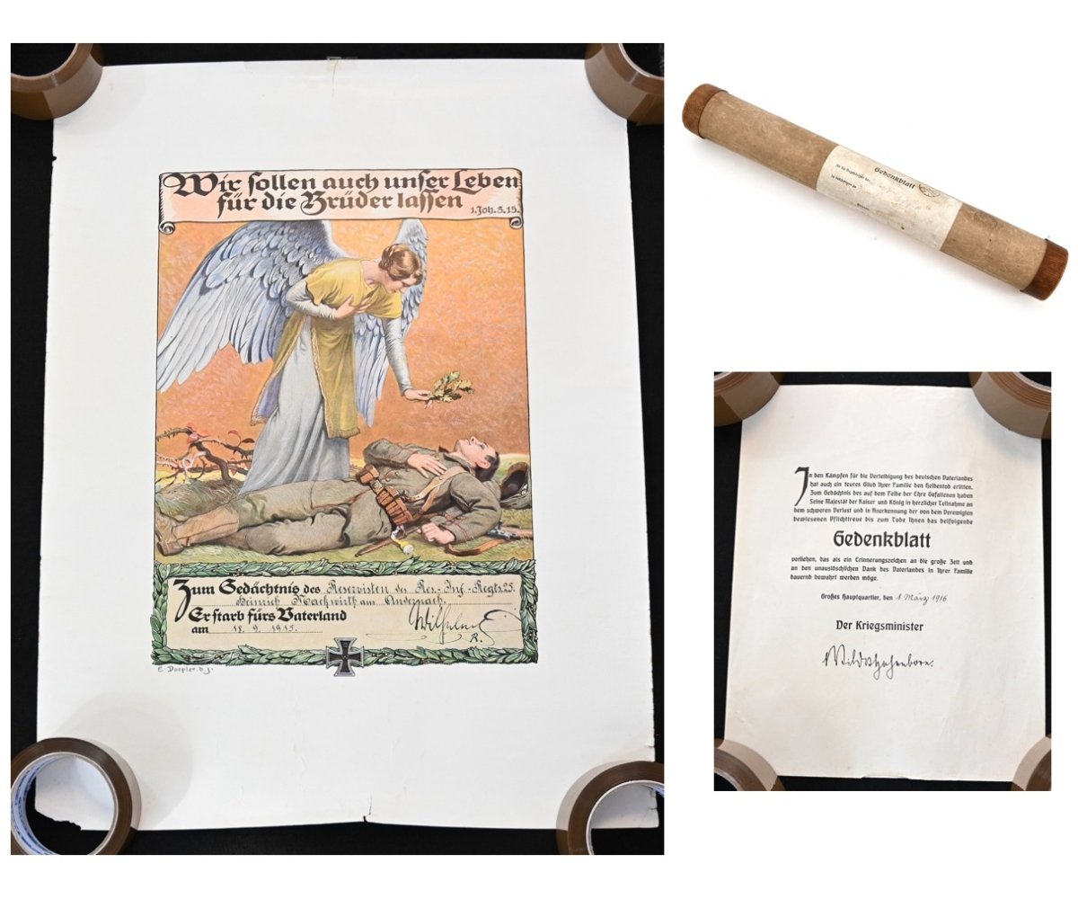 Decorative and uncommon World War 1 Death Notice'Poster'or'Gedenkblatt'Set.