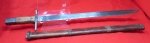 Original period manufacture. A very clean late war example featuring a blue finished blade without fullers, straight guard, square pommel and slightly contoured wooden grips. Most of the original finish remains on the metal fittings and blade with no issues to report. Nice wooden scabbard in natural finish, with two bands of string binding. Overall a clean example, with minor marring to the original finish grips.