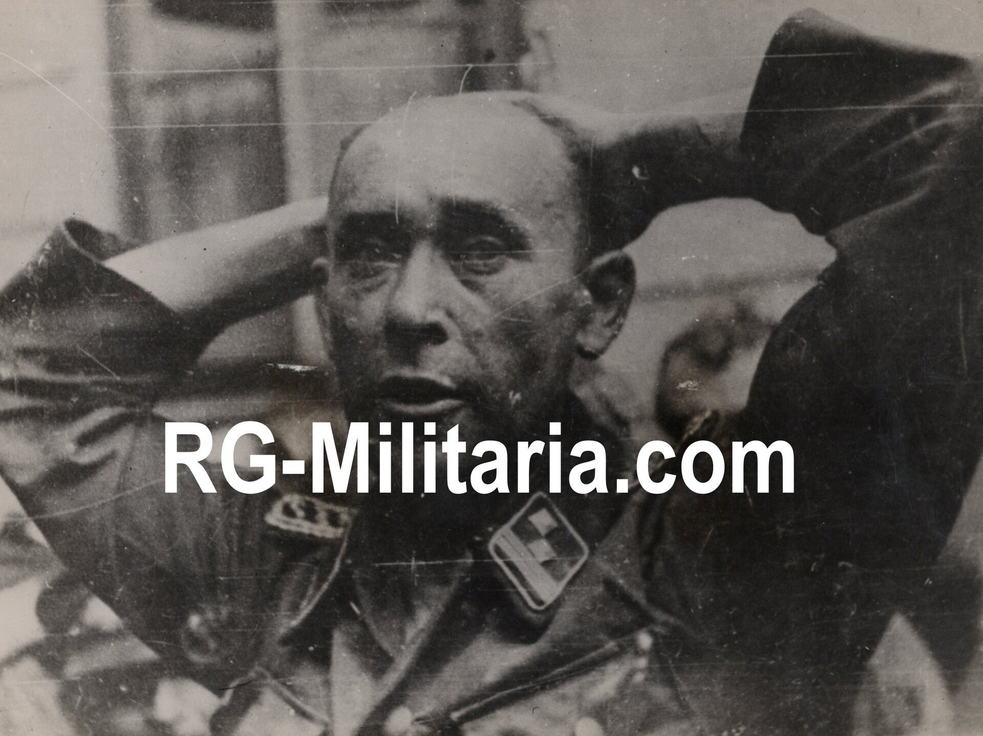 Original WW2 British Press Photo - German Waffen SS prisoner taken hostage by the Polish resistance during the Warsaw Uprising, October (1944)