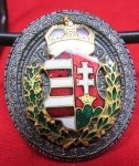 Original era manufacture. Nice quality two-place badge with a pinback reverse. Measures 35 x 40 mm.