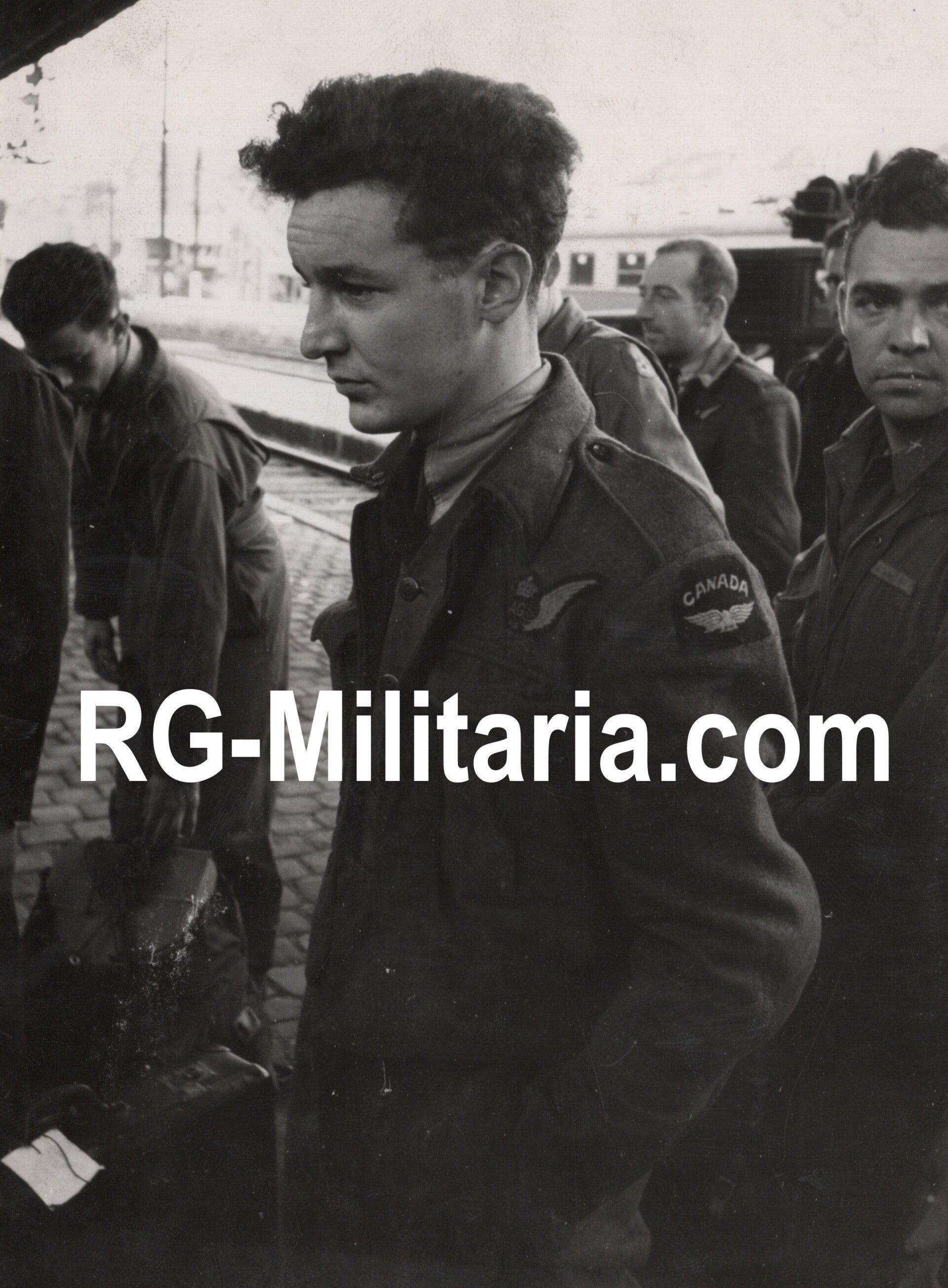 Original WW2 Belgian Press Photo - Canadian POW RAF pilot captured in Normandy transferred to Brussels, Belgium (1944)