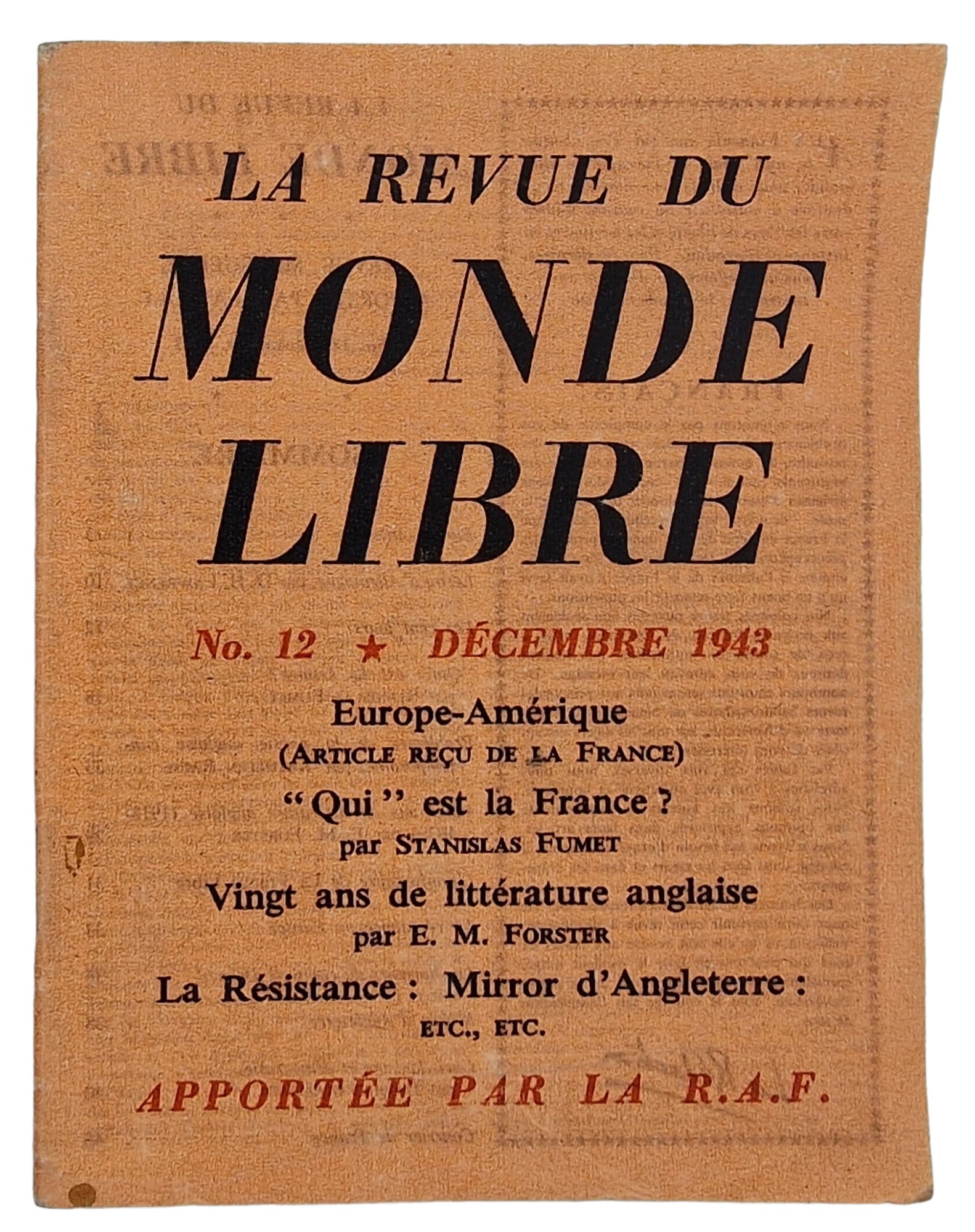 Original WW2 French Leaflet - F 180 La revue du Monde Libre No. 12 (1943)