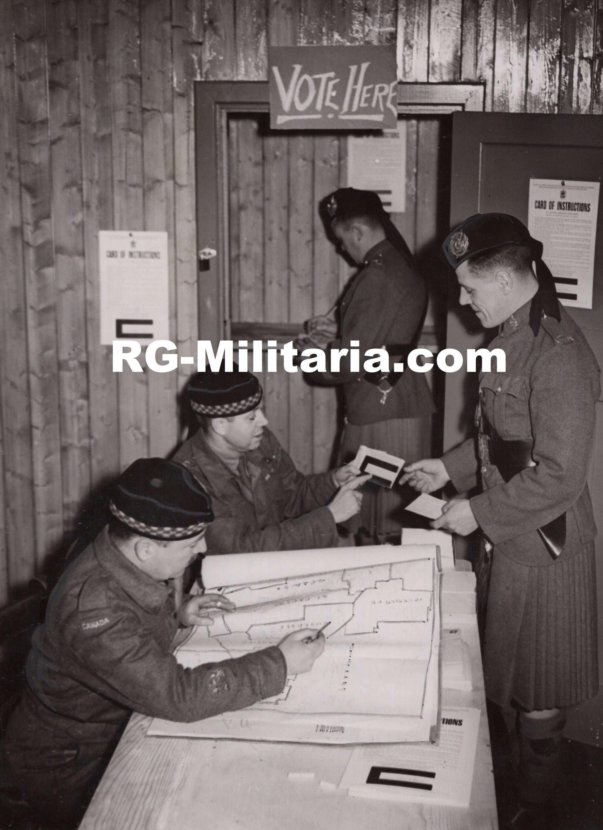 Original WW2 British Press Photo - Canadian soldiers vote in Canadian election, England (1940)Approximately 21 x 15 cmOriginele Wo2 Britse Persfoto - Canadese soldaten stemmen in Engeland (1940)Ongeveer 21 x 15 cm