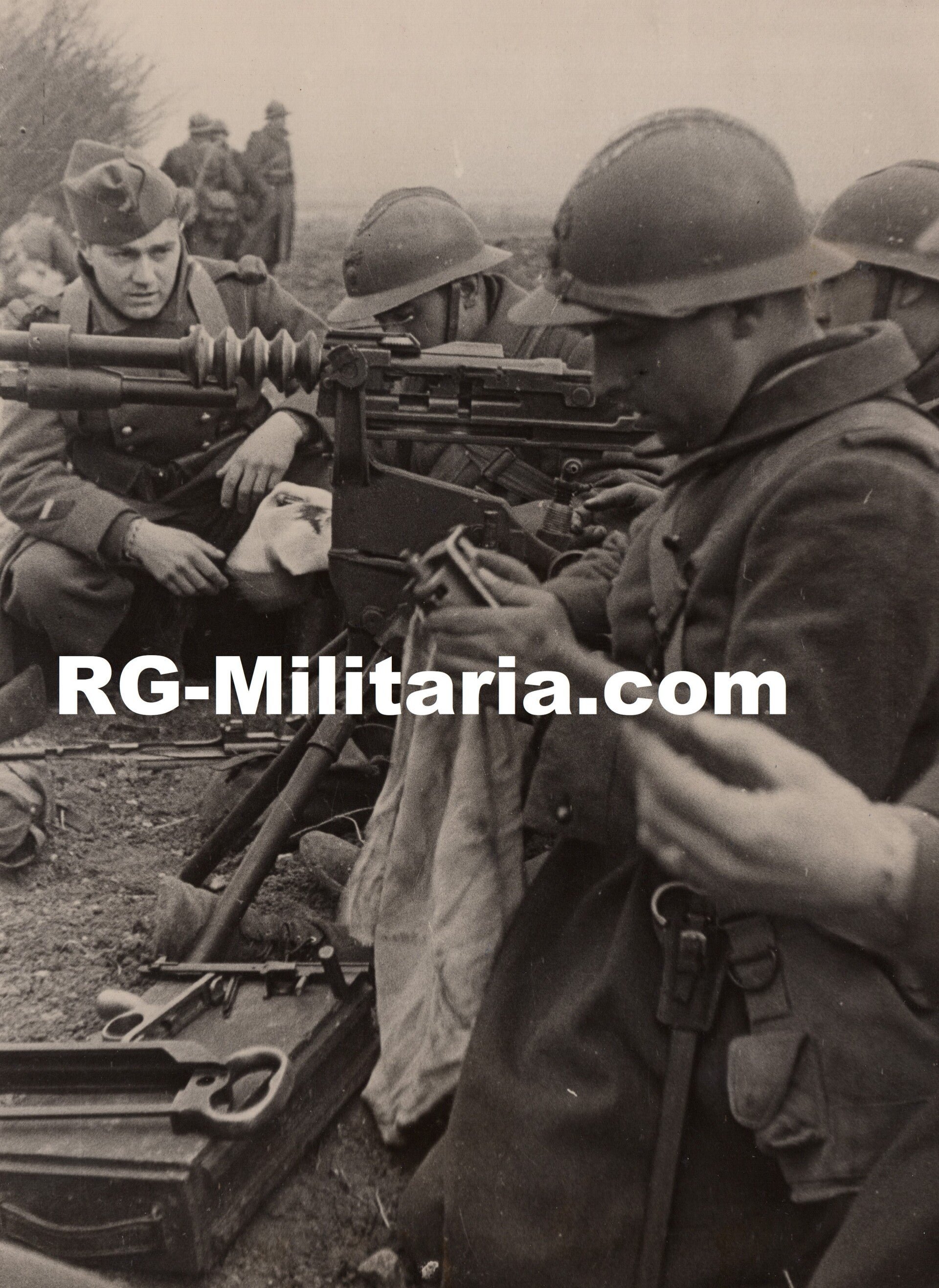 Original WW2 French Press Photo - French soldiers with machine gun (1940)