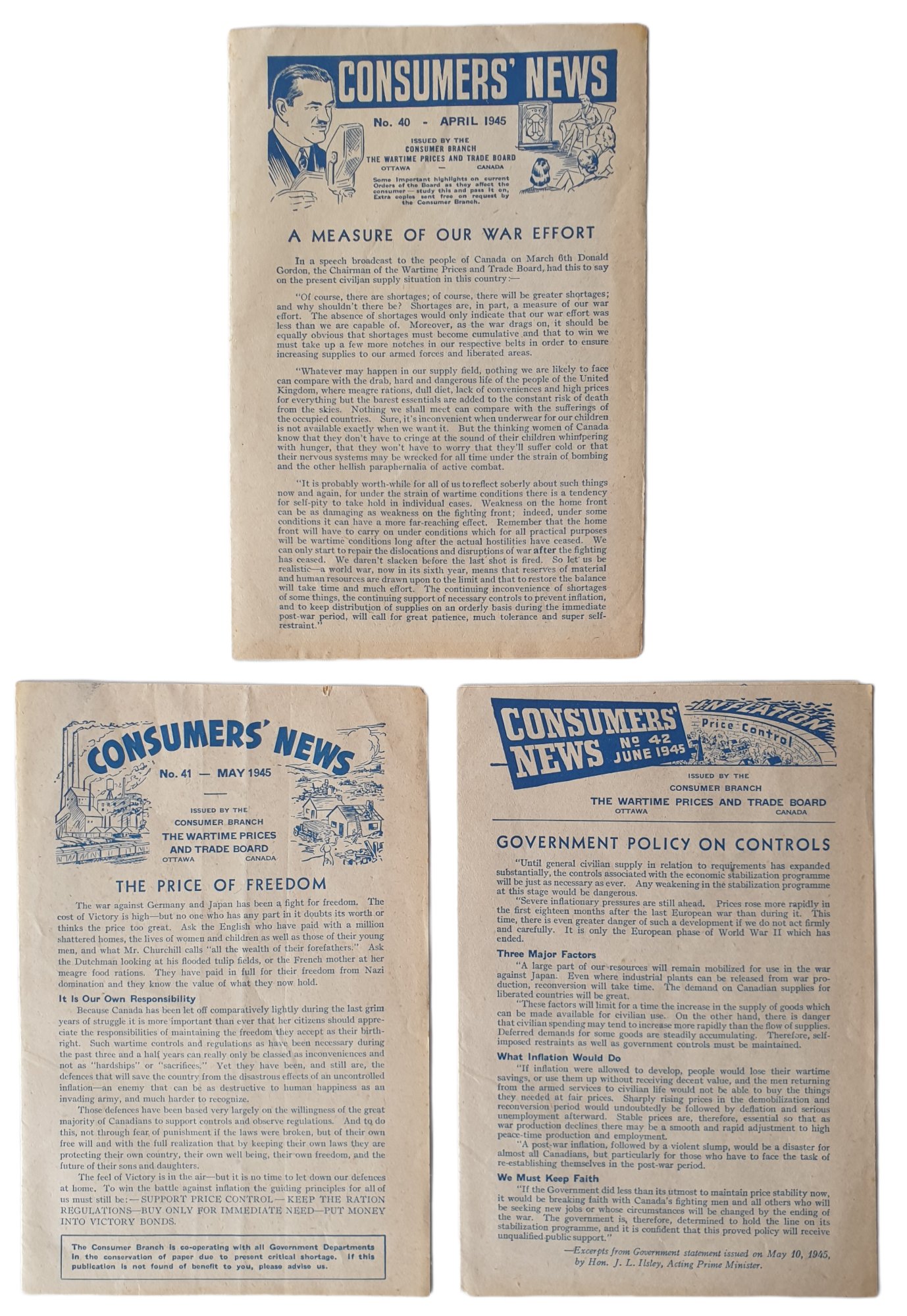 3x Consumers news from 1945. ''Issued by the consumer branch the wartime prices and trade board Ottowa - Canada''3x Consumers news uit 1945. ''Issued by the consumer branch the wartime prices and trade board Ottowa - Canada''Productnummer: 0030639