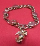 Original era manufacture. US USMC brass sweetheart bracelet. Eagle Globe and Anchor suspended from a chain bracelet with secure closure clasp. Looks to be fairly new.