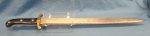 Original era manufacture. Fullerless, 20.5 inch polished steel blade with clear makers marks on its ricasso. Black hard rubber grips secured by three large domed brass rivets. Normal age and wear, no scabbard.