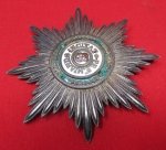 Original period manufacture. Silver breast star measuring 90 mm in width. Minor enamel damage in the green portion, nicely marked on the reverse of the star and on the underside of the mounting pin. A few of the rays of the star a slightly bent, pleasing silver patina finish overall.