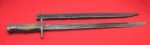 Original era manufacture. Another example of the smaller contractorsof the Type 30 bayonet. Blue finishedblade, straight guard, contoured wood grips with a rounded bird-head pommel.A clean blade with light staining, displaying most of its original blue finish intact, no corrosion or sharpening issues.Original finish wood grips withtypical wear, no cracks or chips,steel patinafinish to the guard and pommel.Black painted steel finish scabbard with most of thepaint remaining, perhaps Navy issue; there are afew small spots of shallow surface denting.