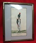 Original era publication. A nicely framed original print by Martinet of a French Garde Imperiale Chasseur. Hand written pl.54 in the upper left margin, the figure appears to be hand colored. Frame measures roughly 9 x 11 inches.