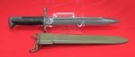 Original era manufacture. A Cold War era copy of a US M1 Garand bayonet. Maker marked on the ricasso, KS with the numbers 60-6. Very well made with nearly 100 per cent of it's black parkerized finish intact. Standard pattern Garand scabbard with an OD over paint finish, the Cogwheel design on the throat has been removed.