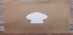 Original period manufacture. Large pattern brassard, white cotton Cook's hat machine sewn to tan cotton uniform material. Single only, one available. Measures 10.5 x 5.25 inches.