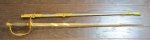 Original era manufacture. A beautiful example of a presentation grade M1860 Staff Officers sword, with a Boston retailers name on the ricasso.The diamond shaped blade measures 29.5 inches in length, running straight and true; gold etched panels on each side of the blade depicting a variety of Civil War soldiers and floral motifs.Fire gilded, elaborate folding guard, and pommel with a silver grip separated by bands of beaded gilt brass. On the underside of the guard, engraved in an attractive floral script is the name, Issac A. Sylvester.Chromed steel bodied scabbard with no issues, decorated with an elaborate drag and suspension loop sections. Overall an extremely attractive sword in very sound condition.