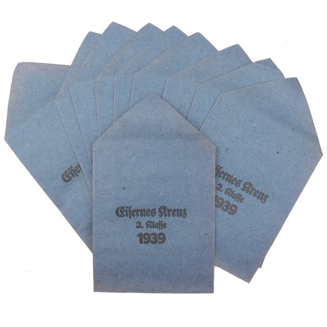 Pouch for the Iron Cross 2nd Class (Verleihungstüte zum Eisernes Kreuz 2. Klasse). The pouch is maker marked by the company of 'Karl Förster & Graf' from Schwäb.Gmünd. Nice original pouch in mint and unissued condition! I found a small stock of original unissued pouches, all in similar condition, the price is naturally for one pouch!