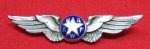 Original era manufacture. Pinback, sterling marked, 2 inch wings, with an enameled star at center. Nice silver patina finish.