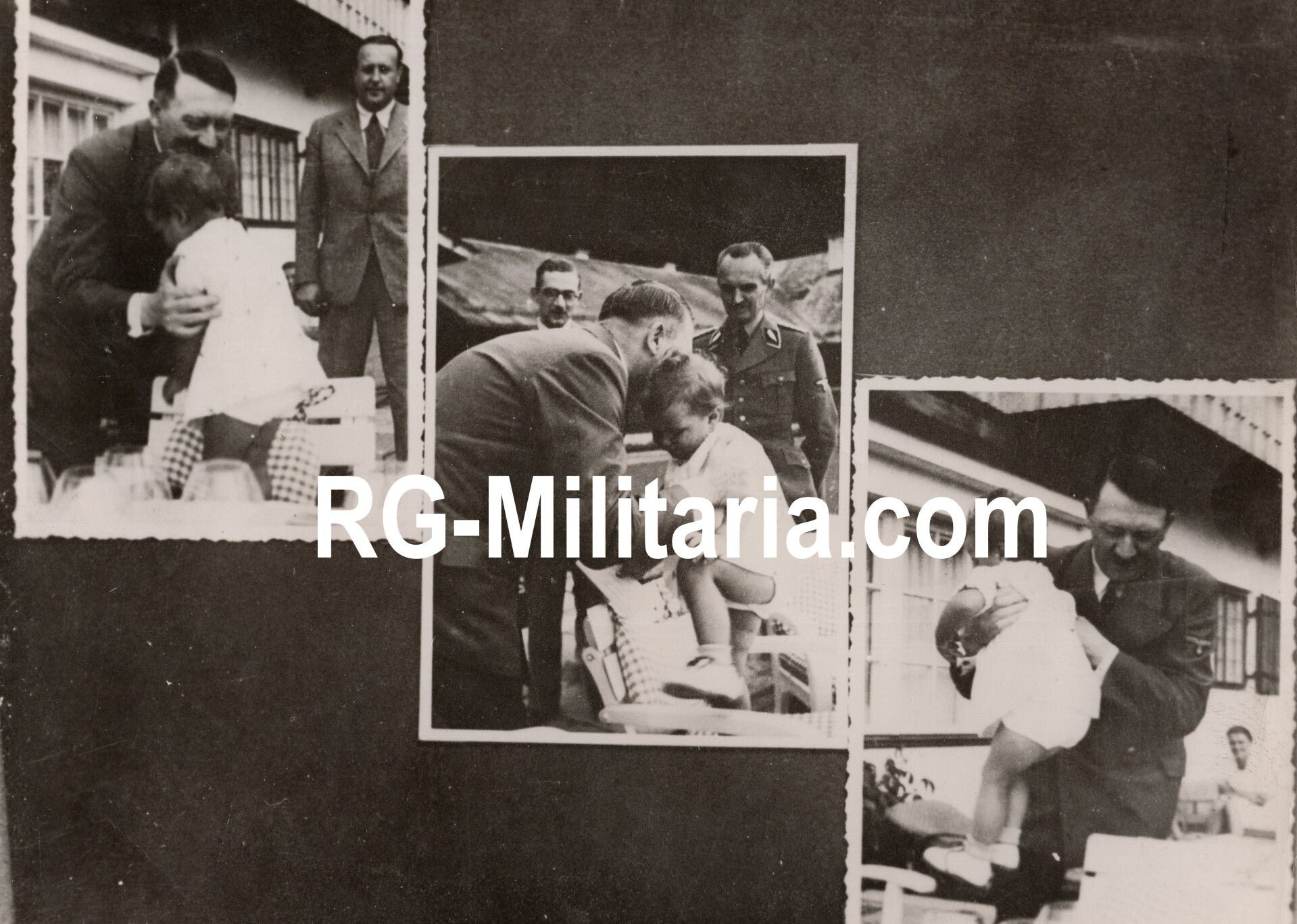 Original WW2 French Press Photo - Picture of the photo album of Eva Braun, Hitler with Ursula ''Uschi'' Schneider (1946)Approximately 20 x 15 cmPicture of an album page of the photo album from Eva Braun, confiscated after the war by US authorities. This picture shows three pictures of Adolf Hitler holding Ursula ''Uschi'' Schneider, the daughter of Eva Braun's best friend, Herta Schneider. The family Schneider spent much time at the Berghof.Many photos were taken of Hitler, Eva Braun, and Uschi, which led to some post-war theories that she was their own child.Originele Wo2 Franse Persfoto - Foto van het fotoalbum van Eva Braun, Hitler met Ursula ''Uschi'' Schneider (1946)Ongeveer 20 x 15 cmFoto van een albumpagina uit het fotoalbum van Eva Braun, dat na de oorlog door de Amerikaanse autoriteiten in beslag werd genomen. Deze pagina toont drie foto's van Adolf Hitler die Ursula ''Uschi'' Schneider vasthoudt, de dochter van Herta Schneider, de beste vriendin van Eva Braun. De familie Schneider bracht veel tijd door op de Berghof. Er werden veel foto's genomen van Hitler, Eva Braun en Uschi, wat na de oorlog leidde tot enkele theorieën dat zij hun eigen kind zou zijn geweest.
