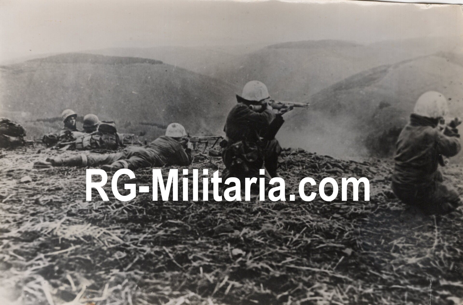 Original WW2 French Press Photo - US soldiers fighting at the Rhine river, Germany (1945)Approximately 17 x 12 cmOriginele Wo2 Franse Persfoto - Amerikaanse militairen vechten bij de rivier de Rijn, Duitsland (1945)Ongeveer 17 x 12 cm