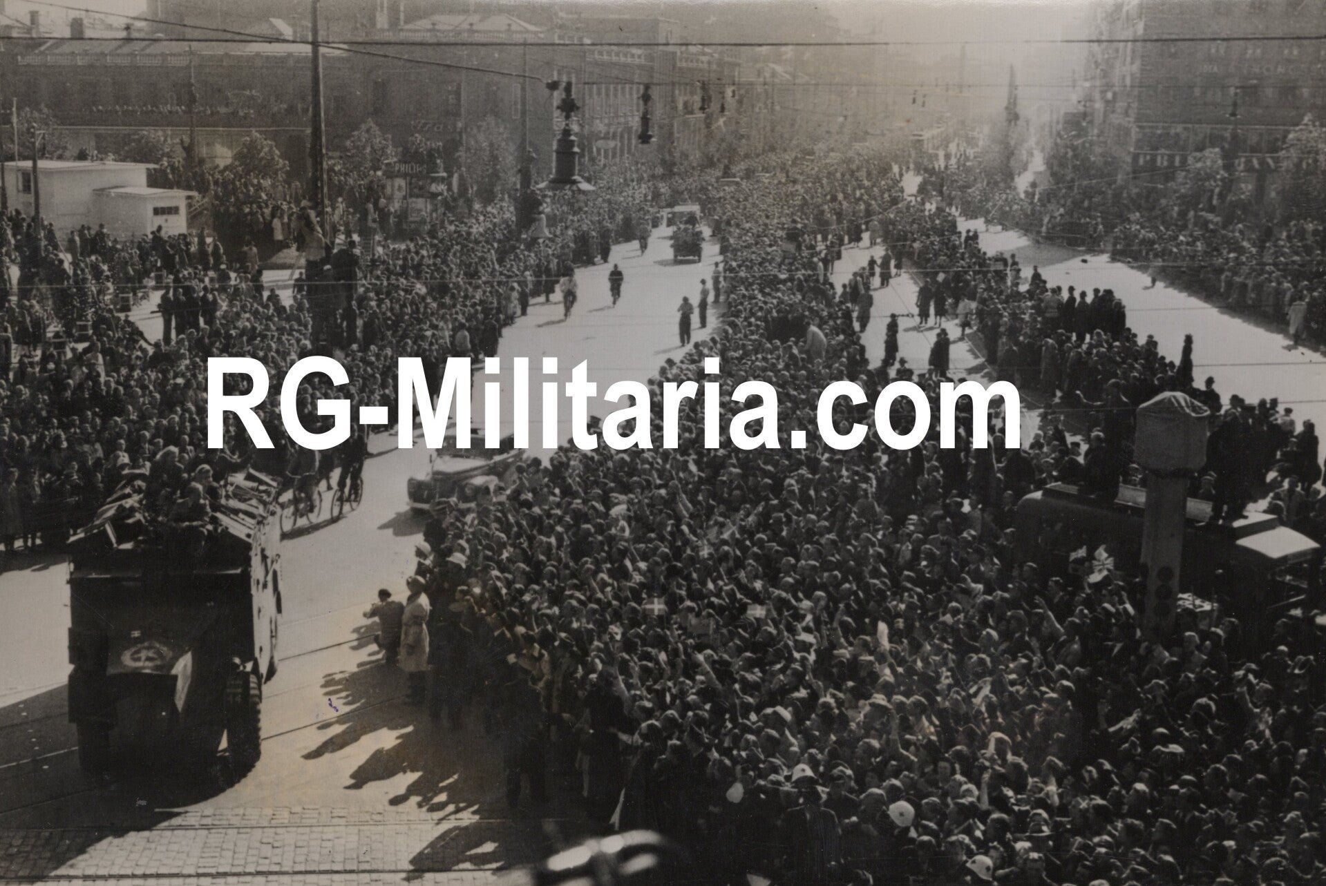 Original WW2 French Press Photo - Liberation of Copenhagen, Denmark (1945)Approximately 17 x 12 cmDENMARK AFTER THE LIBERATION. M.C.On the occasion of the liberation of Denmark, a grand review of British troops took place in Copenhagen.The population gave an enthusiastic welcome to its liberators.Originele Wo2 Franse Persfoto - Bevrijding van Kopenhagen, Denemarken (1945)Ongeveer 17 x 12 cmLE DANEMARK APRĂS LA LIBĂRATION. M.C.A l'occasion de la libĂ©ration du Danemark, une grande revue de troupes Britanniques a eu lieu Ă Copenhague.La population a fait un accueil enthousiaste Ă ses libĂ©rateurs.