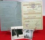 Original era manufacture. A clean condition Heer Wehrpass issued in 1937 . Photo in cover showing him sporting a Hitler style mustache, with what appears to be an Iron Cross ribbon through a buttonhole. Two extra photos in the front pocket.