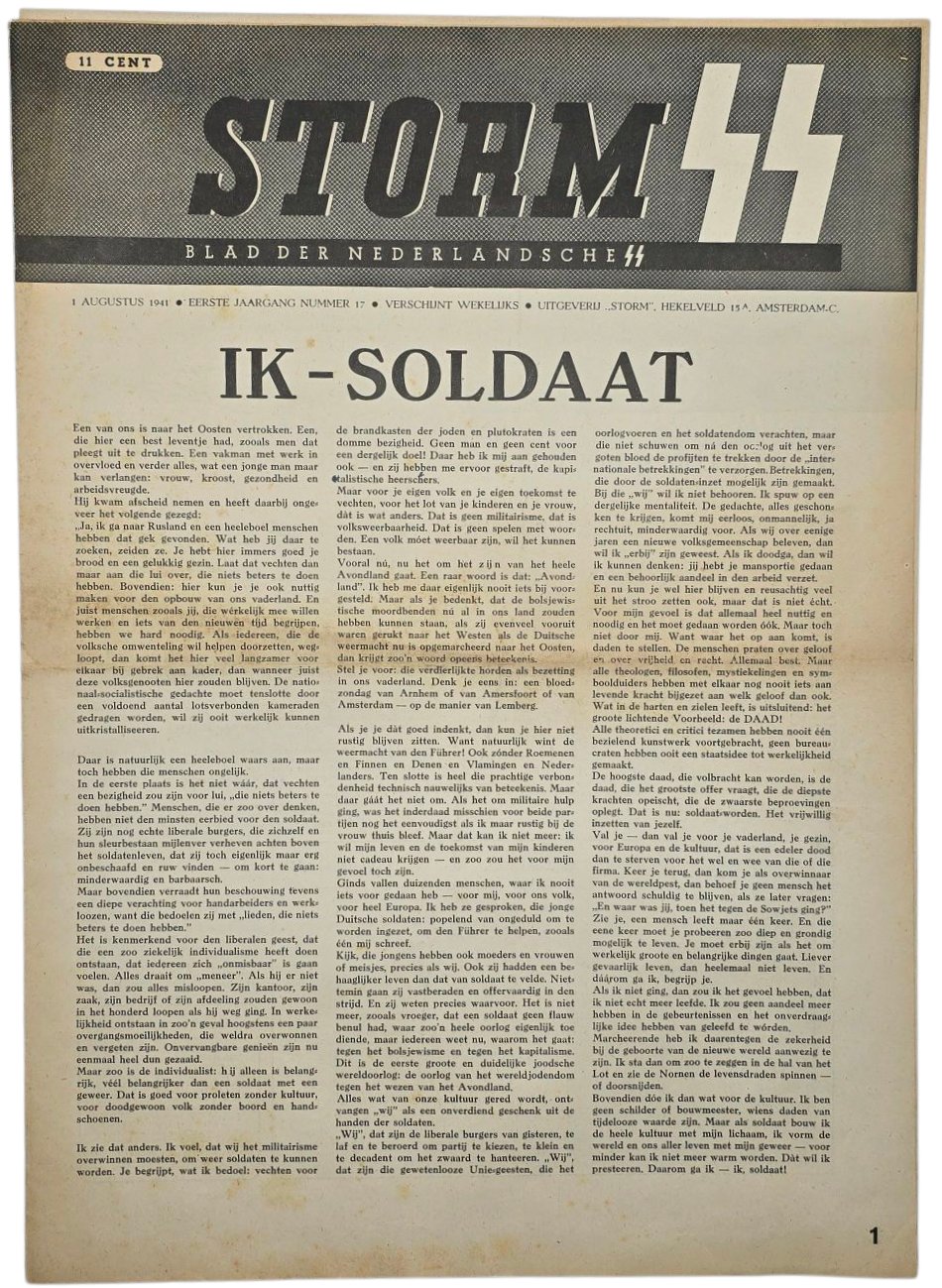 Original WW2 Dutch Waffen SS Newspaper - Storm SS 1st Year No. 17 (1941)
