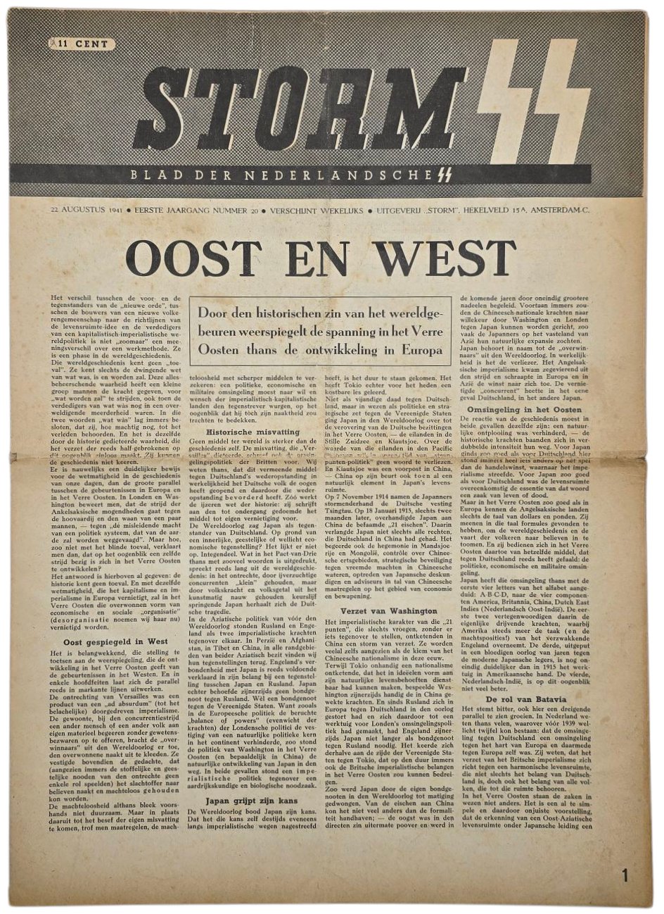 Original WW2 Dutch Waffen SS Newspaper - Storm SS 1st Year No. 20(1941)Storm SS was the newspaper for the Dutch Waffen SS sympathizers. The newspaper began in 1941 and ended in May 1945. The newspaper often shows (Dutch) Kriegsberichter photos, political articles, and caricatures.The newspaper has been repaired with acid-free tape.Originele Wo2 Nederlandse Waffen SS Krant - Storm SS 1ste Jaargang No. 20 (1941)Storm SS was de krant voor de Nederlandse Waffen SS-sympathisanten. De krant begon in 1941 en eindigde in mei 1945. De krant toont vaak Kriegsberichter-foto's, politieke artikelen en karikaturen.De krant is gerepareerd met zuurvrij tape.