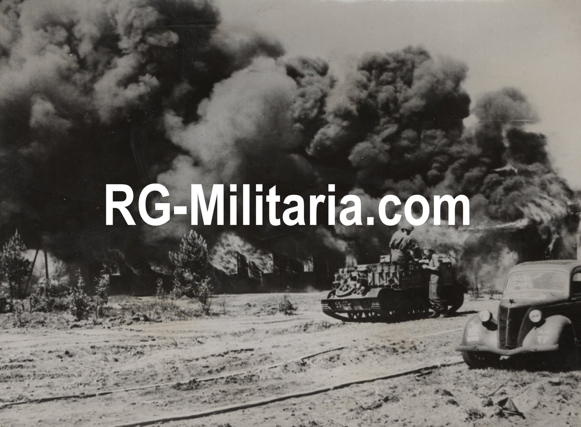 Original WW2 French Press Photo - Allied soldiers on a Bren Gun Carrier with a Second Army carApproximately 17 x 12 cmOriginele Wo2 Franse Persfoto - Britse militairen met een Second Army AutoOngeveer 17 x 12 cm