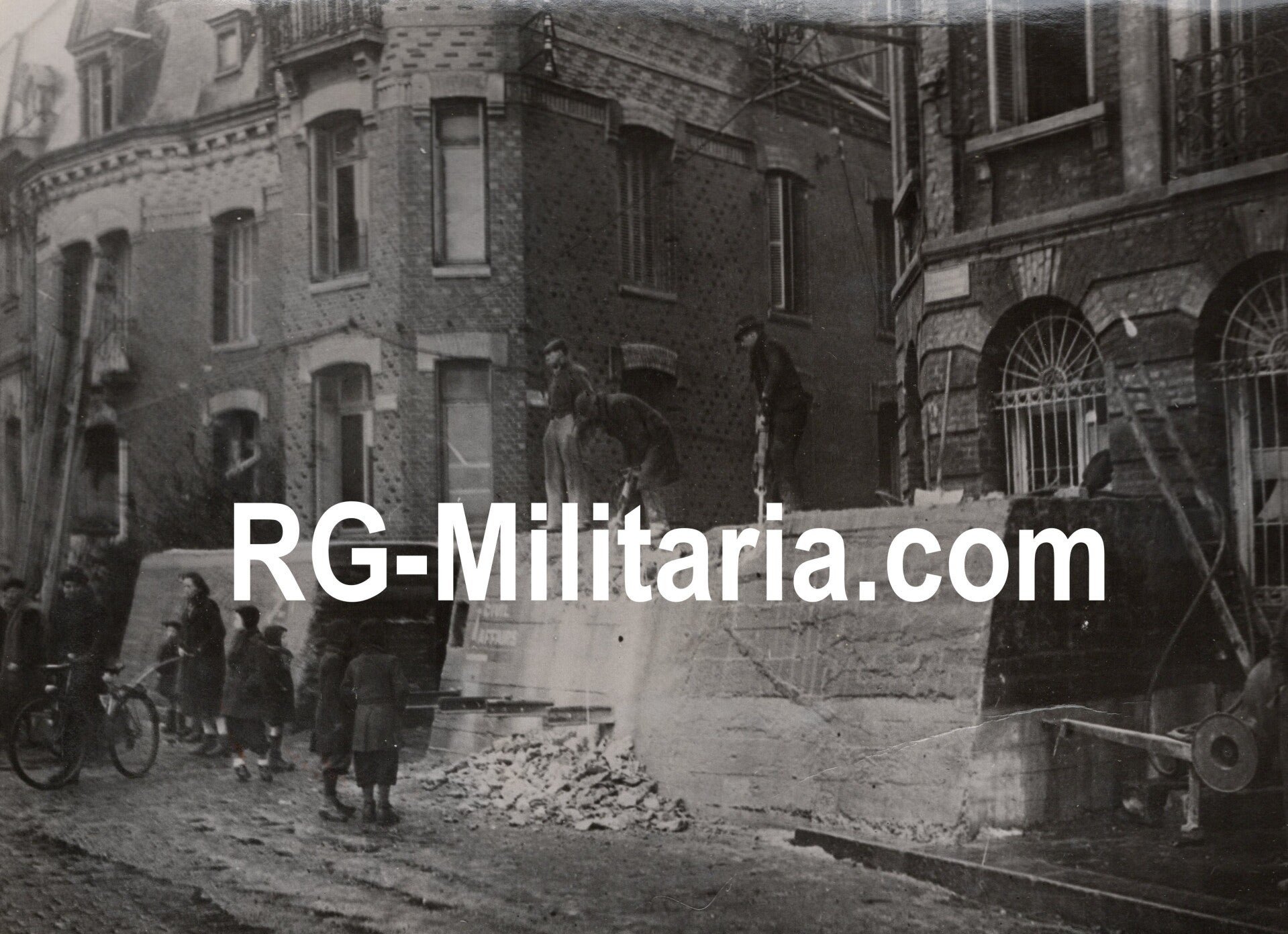 Original WW2 French Press Photo - Civilians removing bunker walls near the French coastApproximately 17 x 12 cmOriginele Wo2 Franse Persfoto - Burgers verwijderen bunkermuren bij de Franse kustOngeveer 17 x 12 cm