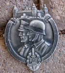Original period manufacture. Zinc tinnie with a pinback reverse, Assman mfg.