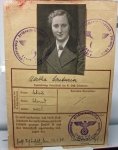 Original period manufacture. Tri-fold identity book issued to a young woman born in 1937, issue date 1938. Photo in the last page
