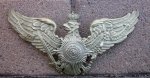Original period manufacture. Intact example with a 8.75 inch wingspan. Separate garde star at center which is held in place by a single leather wedge, the other wedge is missing. Two helmet metal mounting loops on the reverse, measuring between the two 120 mm. Even patina finish overall.
