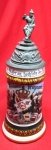 Original era manufacture. Fine quality porcelain stein of a type purchased by a soldier at the end of his compulsory 2 year enlistment. The stein stands 12.5 inches in height, with a lithopane bottom and a decorative pewter lid. The stein is very sound, no cracks or chips, however the thumb latch needs to be re-soldered in place. The latch is inside the stein in a small plastic bag. Otherwise a very handsome looking 124 year old bier stein.
