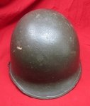 Original era manufacture. US WWII swivel bale M1 steel helmet shell with name inside. Front seam, reflective edge, old GI overpaint.