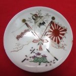Japanese WWII Era Large Size Army Sake Cup, Infantry Anniversary Crossed Flags and Crane