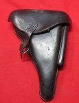 Original era manufacture. Originally a brown leather holster, which was re-dyed black, for possible WWII use. Clear unit markings FAR 66 and 1911 date under the flap. Pliable leather throughout. No breaks in the stitching, never oiled, scattered minor scuffing, overall a sound old holster for your DWM or Erfurt P08.