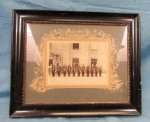 Original era photography. A very nice quality image of eleven Prussian enlisted soldiers ready for Guard Mount. Each wears his brass trimmed pickelhaube, and is armed with the 88 Commission Rifle.Black lacquer finishedwooden framewith a gilt inner edge, measuring 14 x 11.5 inches. The6.5 x 5 inch image is mounted to a nicely decorated cardboard mount, original paper backing on the reverse, with a triangular suspension loop. Minor nicks in the edge of the frame.