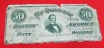 Original era manufacture. US Civil War Confederate FIfty Dollar Bill, original note produced during the Civil War. Light handling and wear.